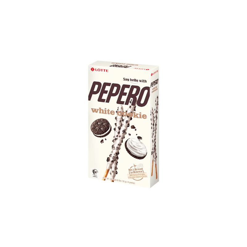 บิสกิตสติ๊กรสเปเปโร่ไวท์คุกกี้ ผสมผสานบิสกิตกรอบเข้ากับไวท์ช็อกโกแลตเนื้อครีมและคุกกี้กรุบกรอบ ขนมขบเคี้ยวเกาหลีแสนสนุกสำหรับทุกโอกาส